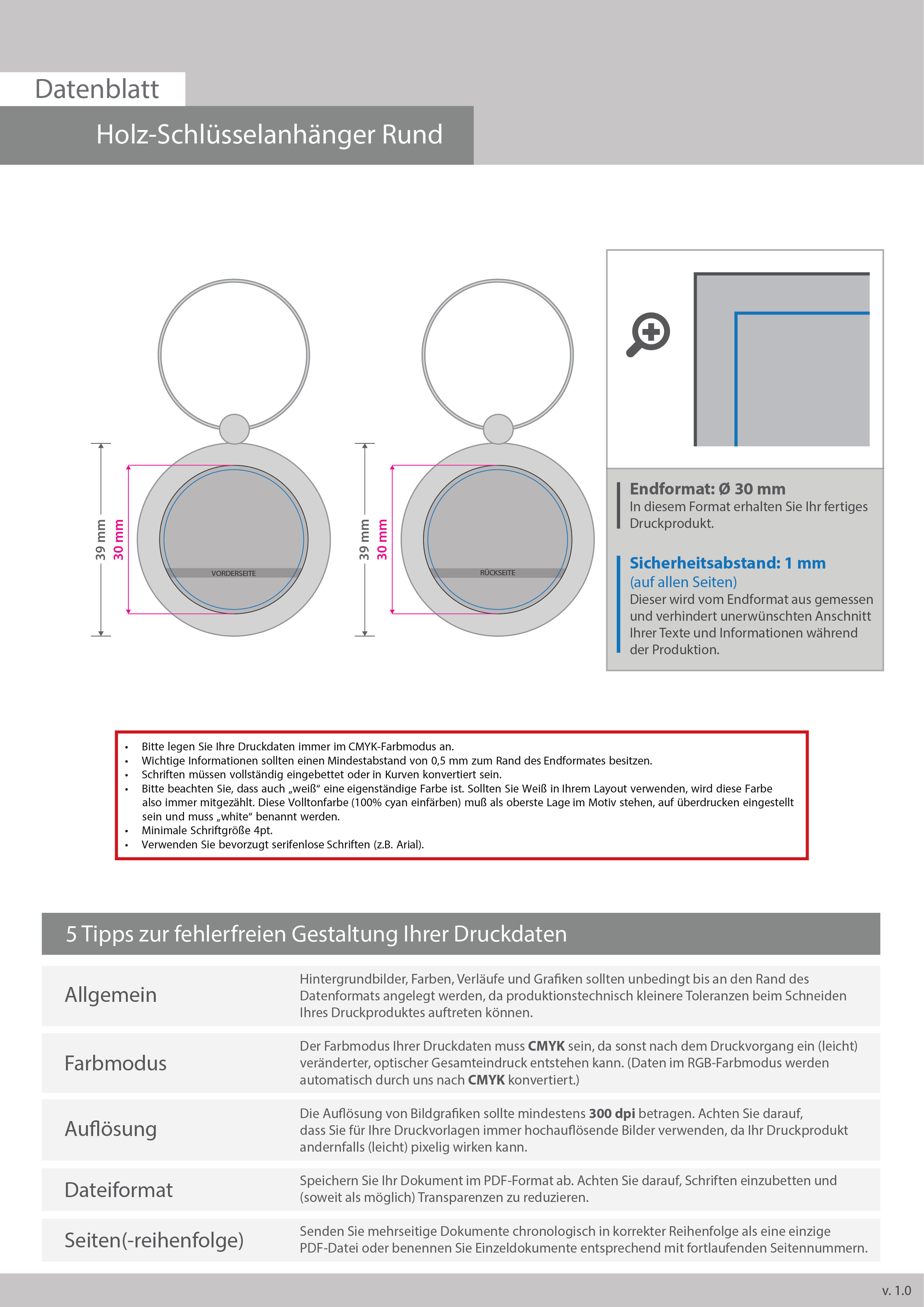 Holz-Schlüsselanhänger rund 4/4 farbig, beidseitig bedruckt