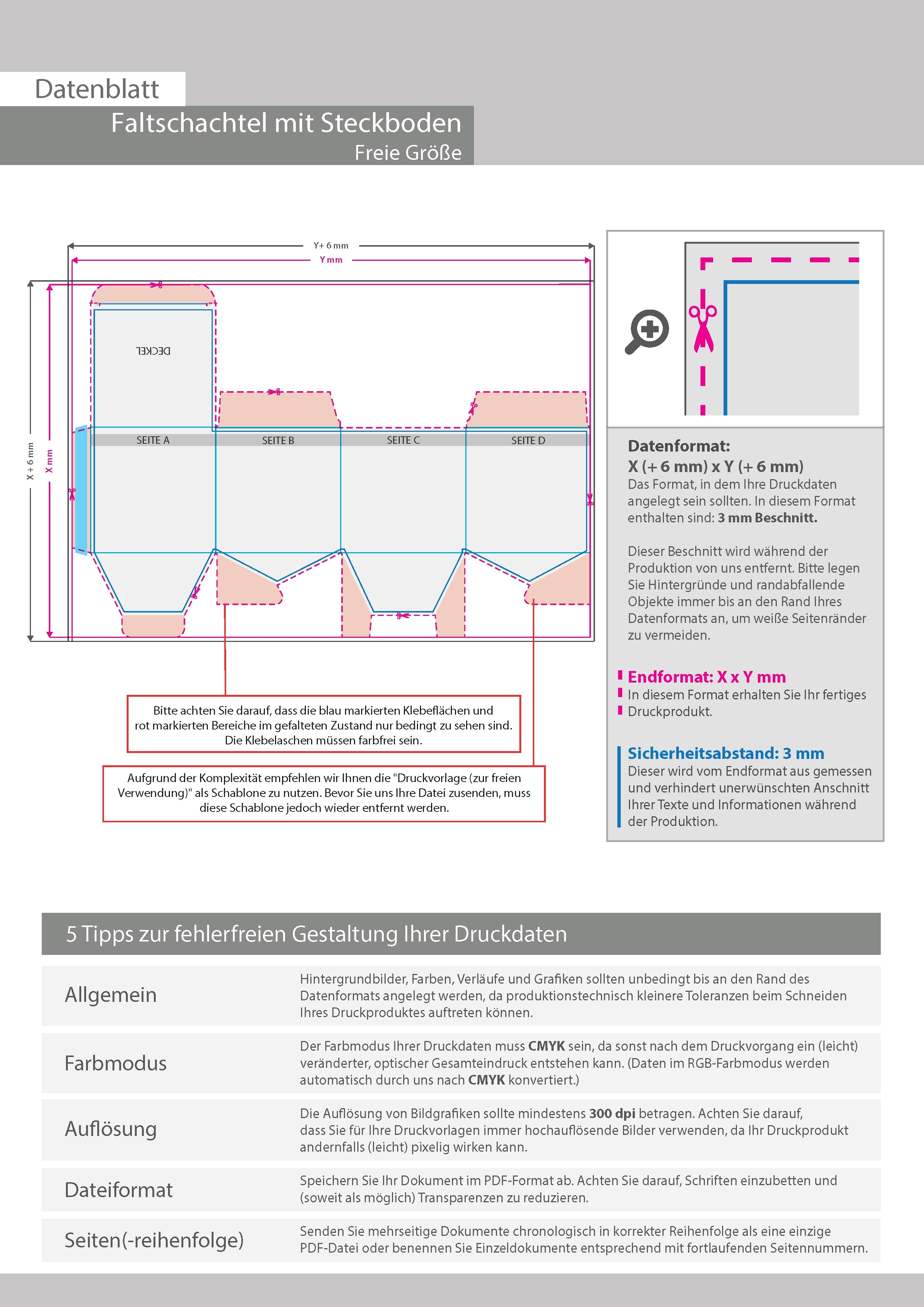 Faltschachtel mit Steckboden in freier Größe einseitig bedruckt 4/0-farbig