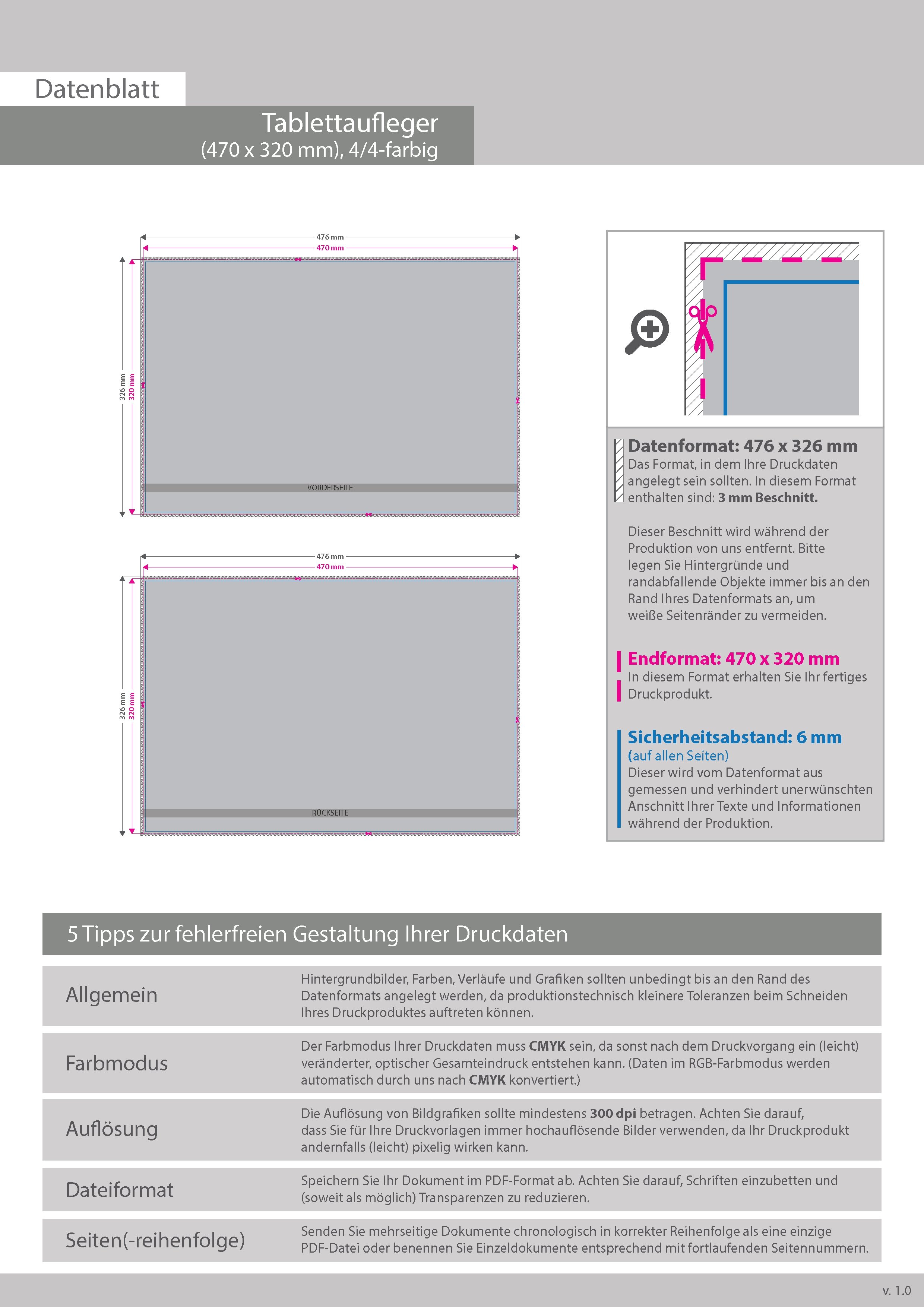 Tablettaufleger 470 x 320 mm beidseitig 4/4-farbig bedruckt (CMYK)