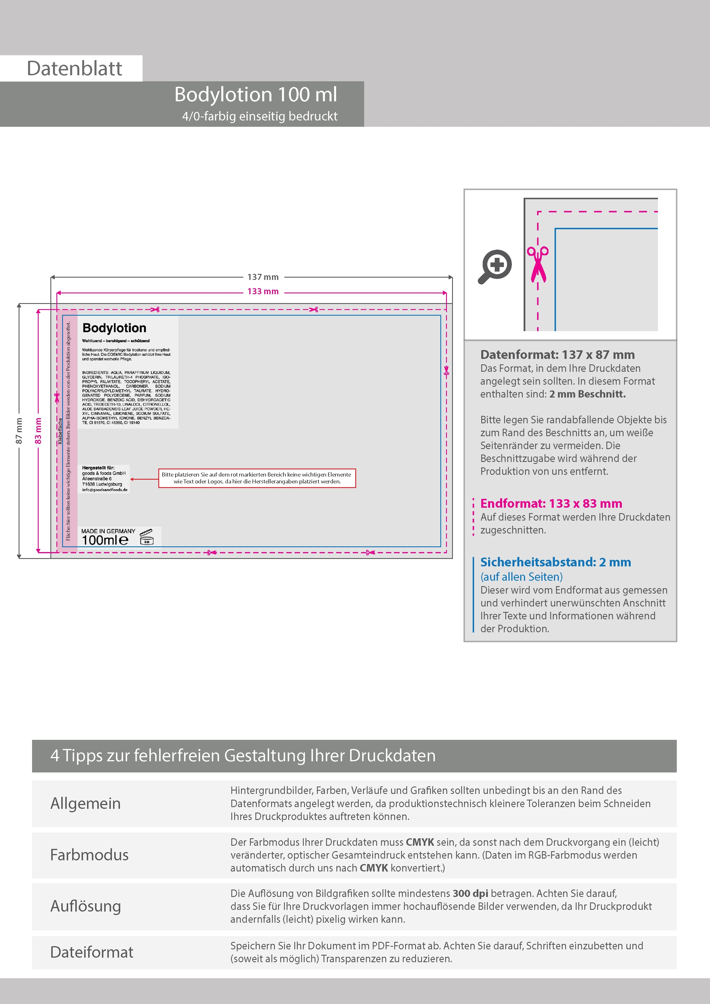 Bodylotion 100ml, 4/0-farbig einseitig bedruckt