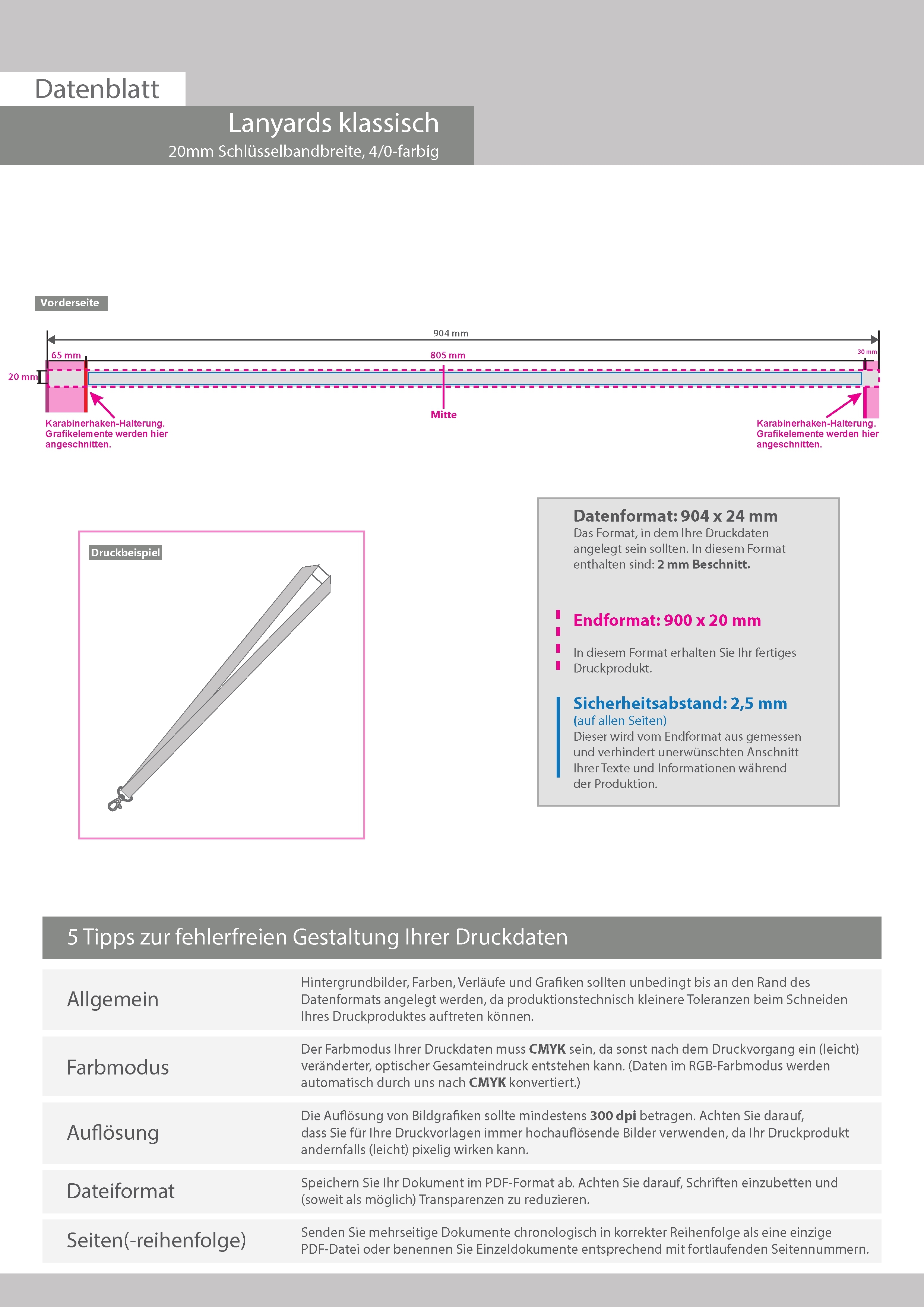 Lanyards klassisch, 20 mm Schlüsselbandbreite, 4/0-farbig einseitig bedruckt
