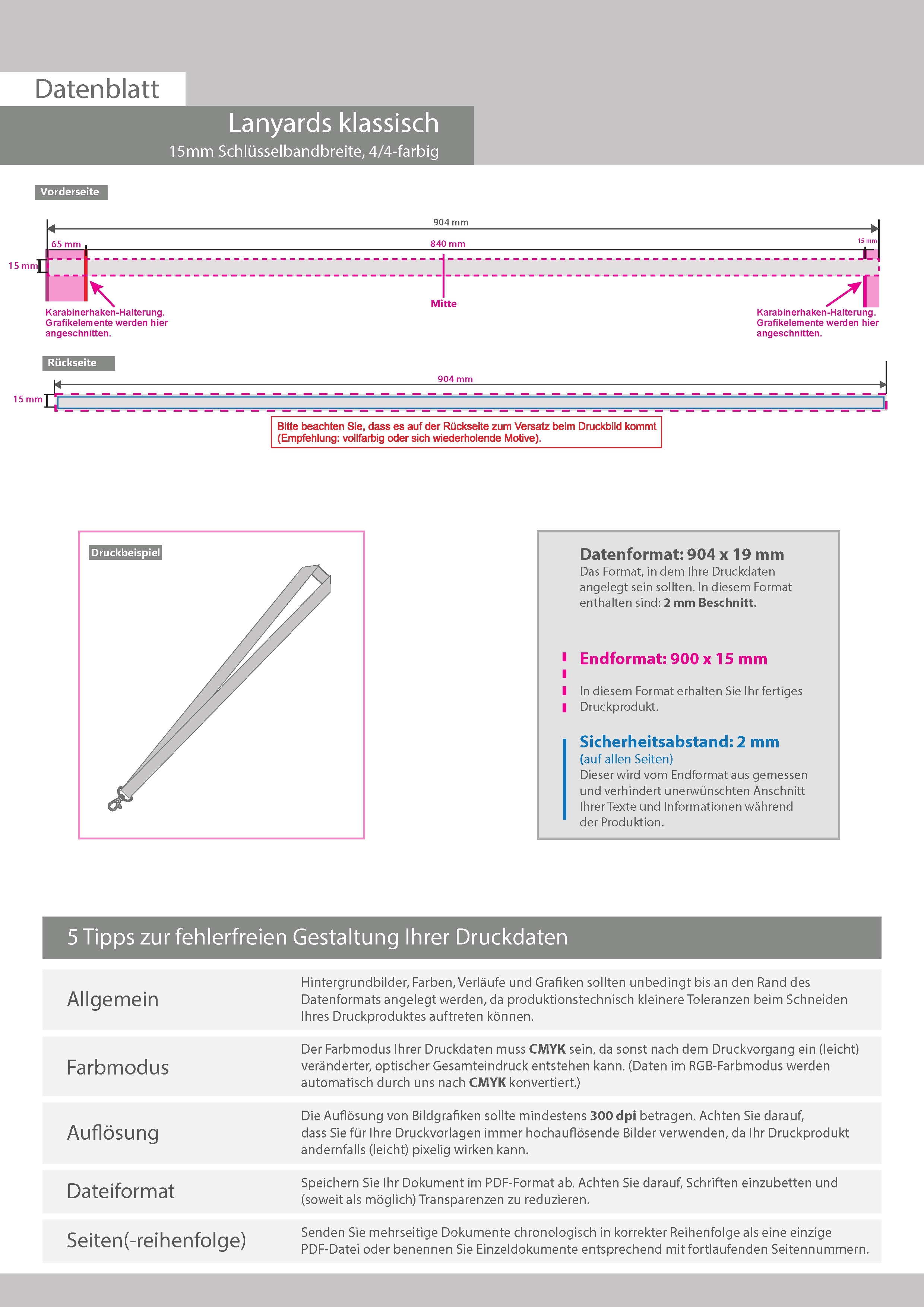 Lanyards klassisch, 15 mm Schlüsselbandbreite, 4/4-farbig beidseitig bedruckt