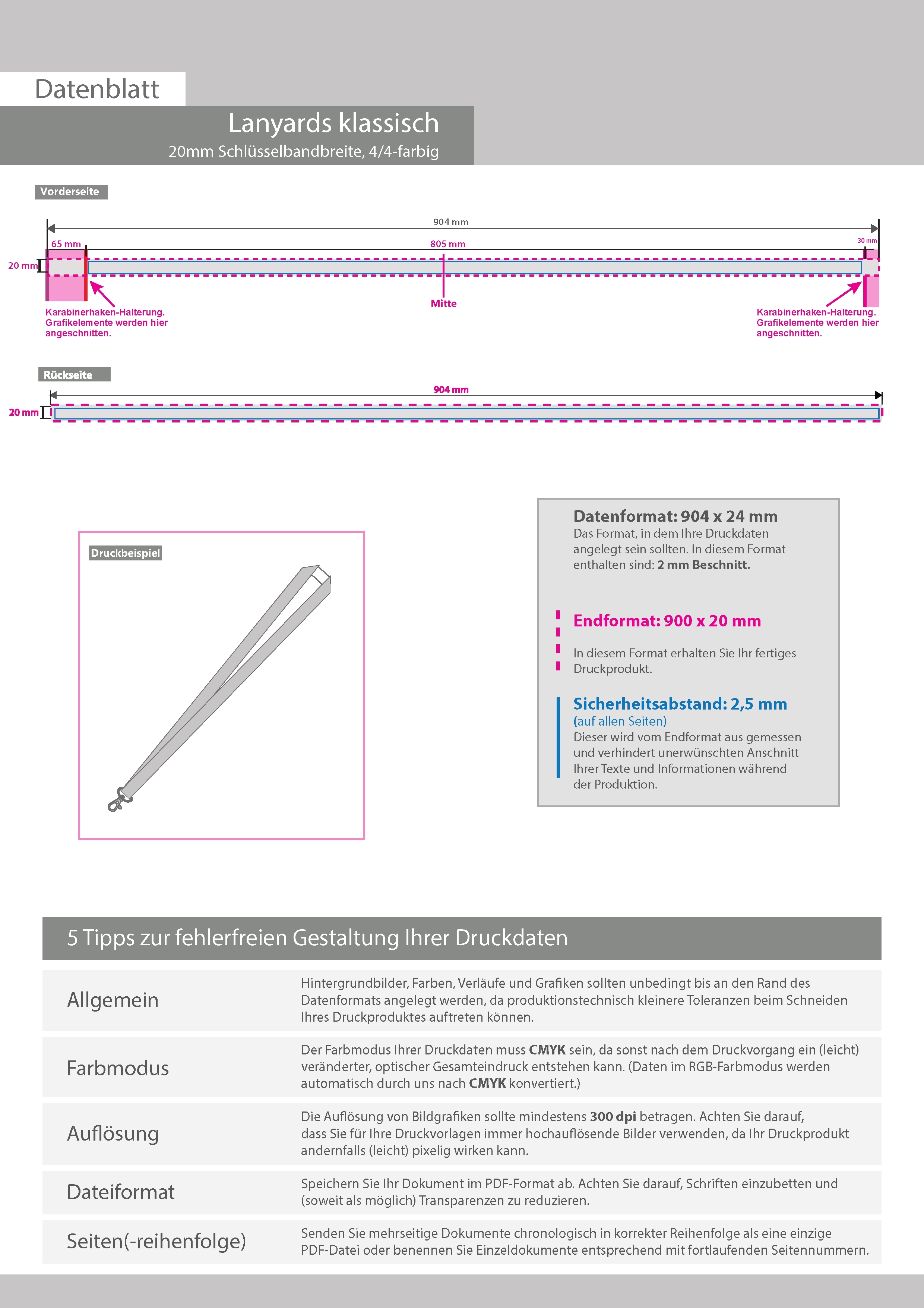 Lanyards klassisch, 20 mm Schlüsselbandbreite, 4/4-farbig beidseitig bedruckt