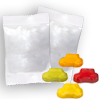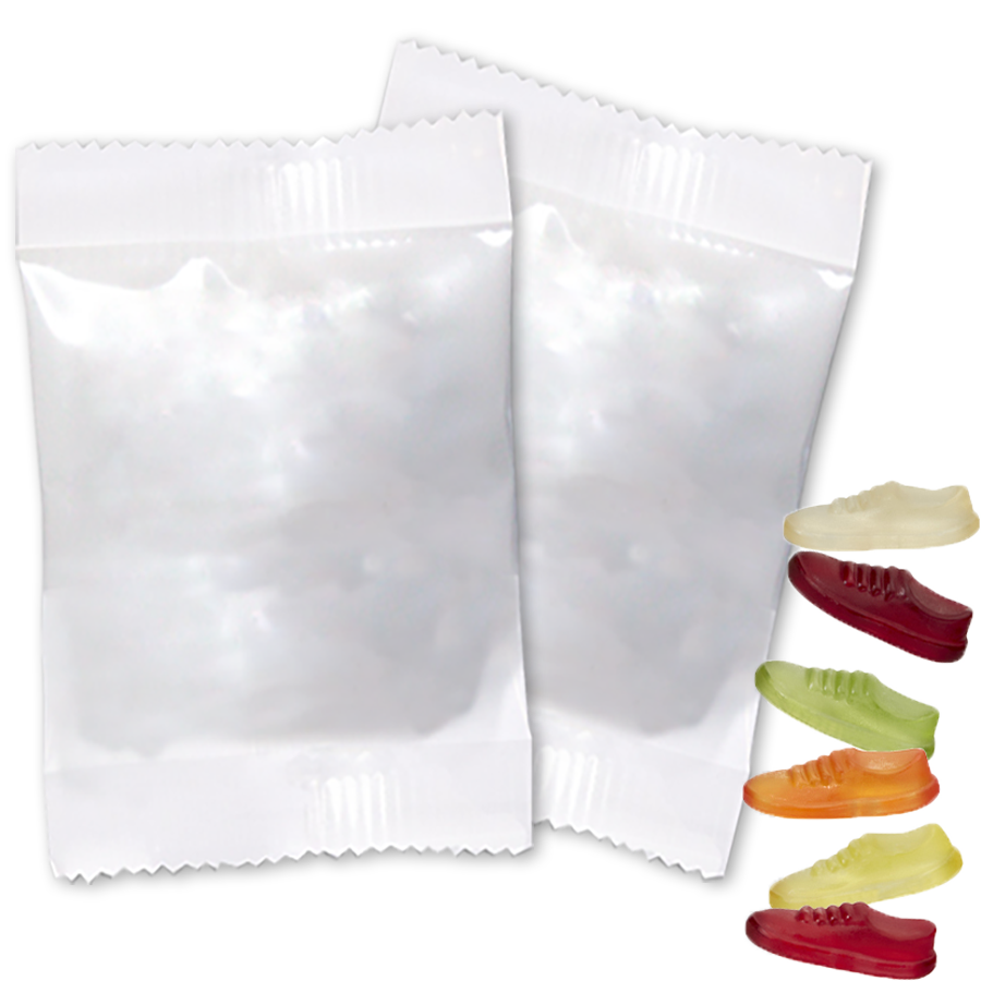 Sei es auf Messen, am Point of Sale oder zu allerlei Anlässen – Fruchtgummis in verschiedenen Formen sind ideale Give-aways. Wählen Sie aus sämtlichen Formen wie einer Brille, einem Schiff, einer Blume, Werkzeugen und vielen weiteren die für Ihre Zielgruppe passende. Die Fruchtgummis sind farblich und geschmacklich gemischt und haben einen Fruchtsaftgehalt von 10 %. Sie kommen in weißen Tütchen à 10 g Inhalt daher, die sich ein- oder beidseitig vollfarbig mit Ihrem Wunschmotiv bedrucken lassen.