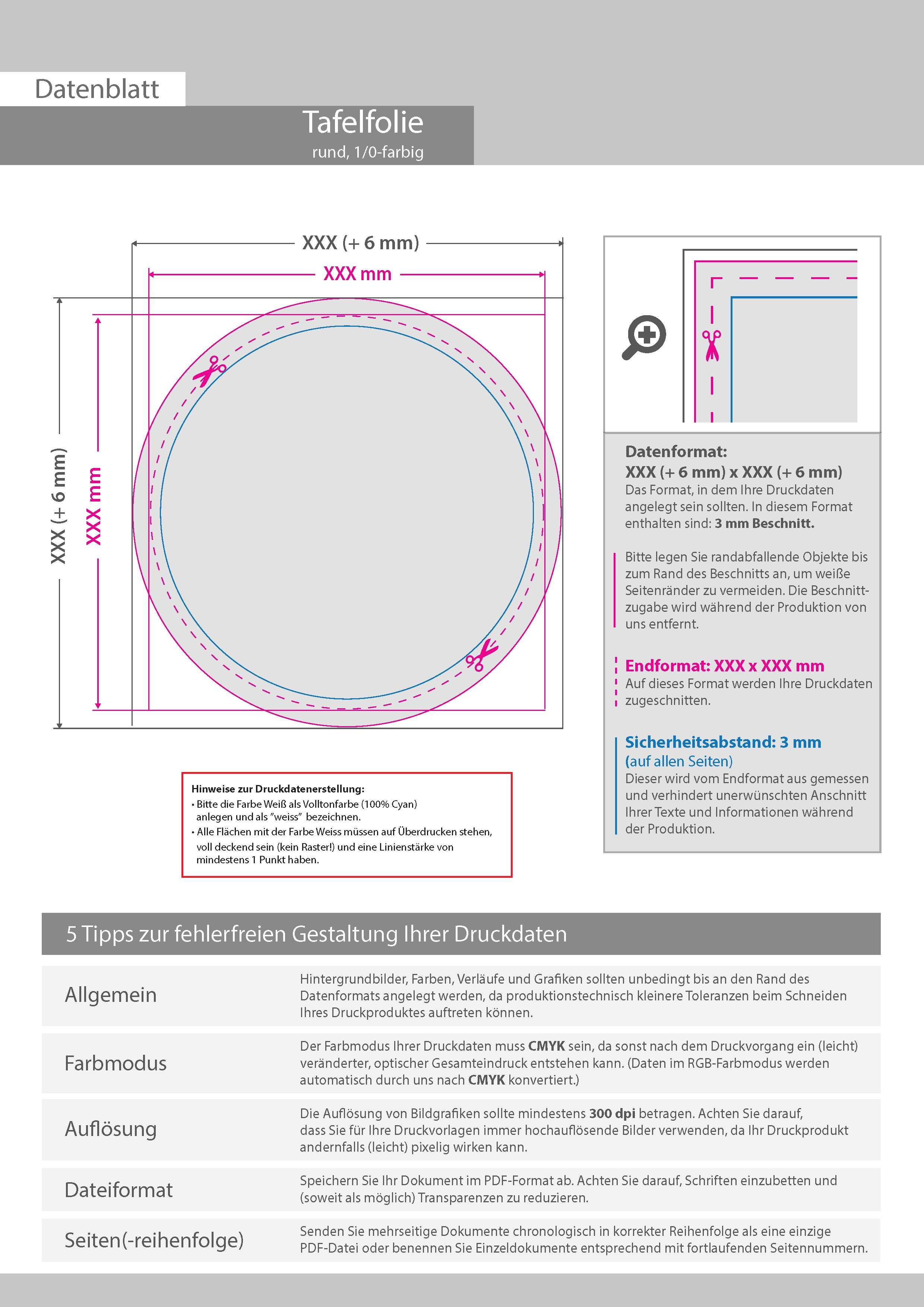 Hochwertige Tafelfolie mit Weißdruck rund (kreisrund konturgeschnitten)