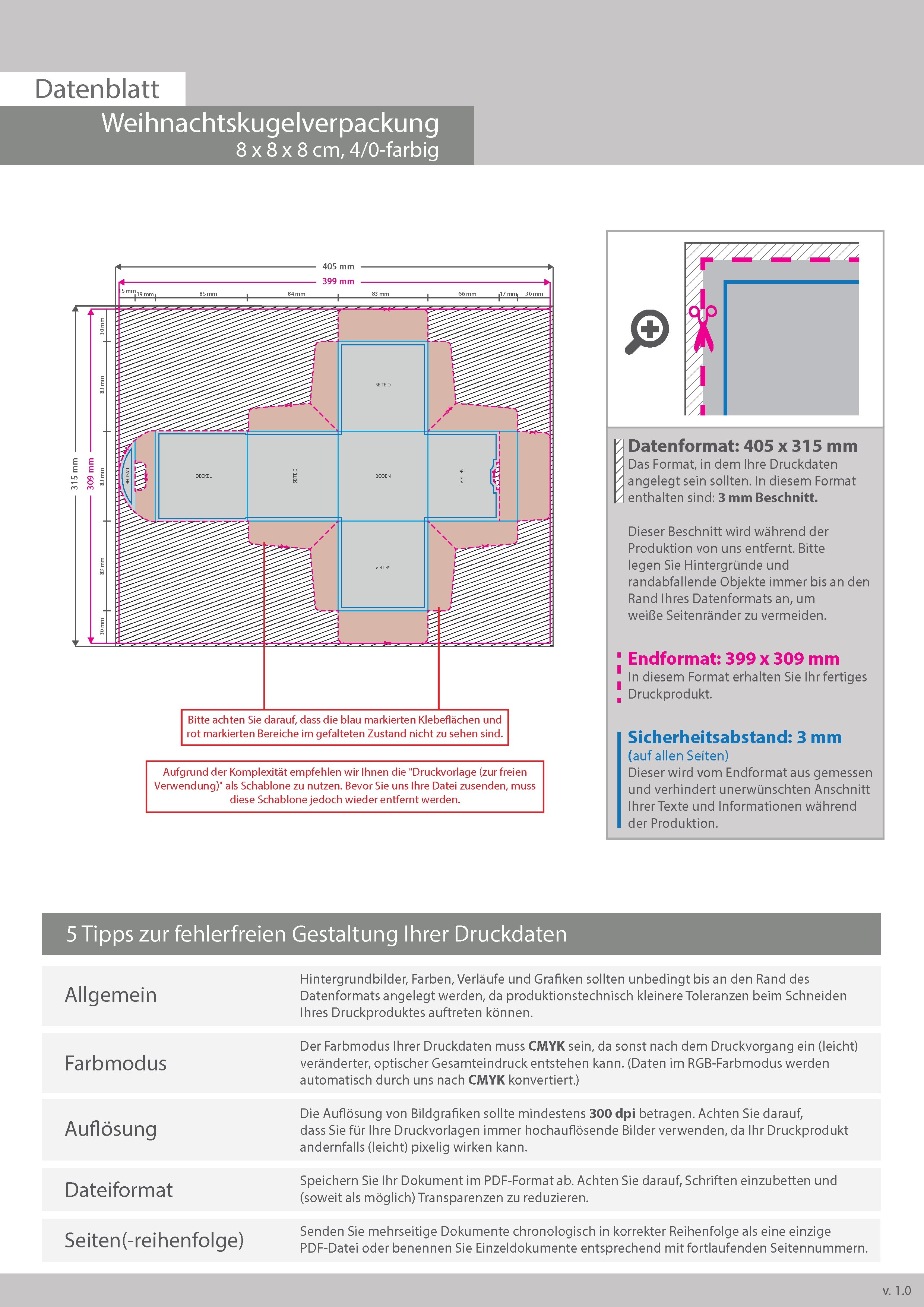 Weihnachtskugelverpackung Standard (8 x 8 x 8 cm) einseitig bedruckt 4/0-farbig