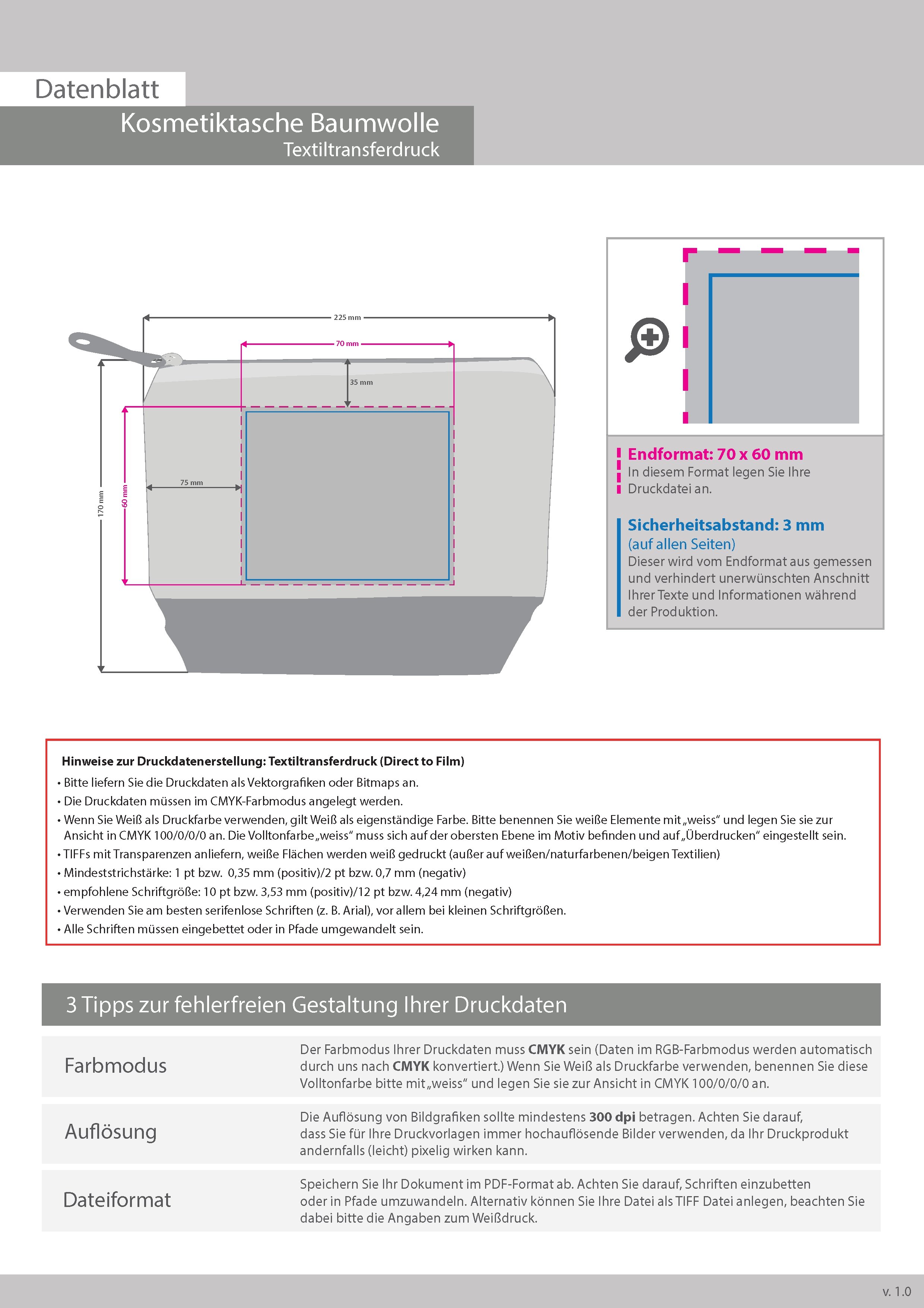 Kosmetiktasche Baumwolle, 4/0 farbig, einseitig bedruckt
