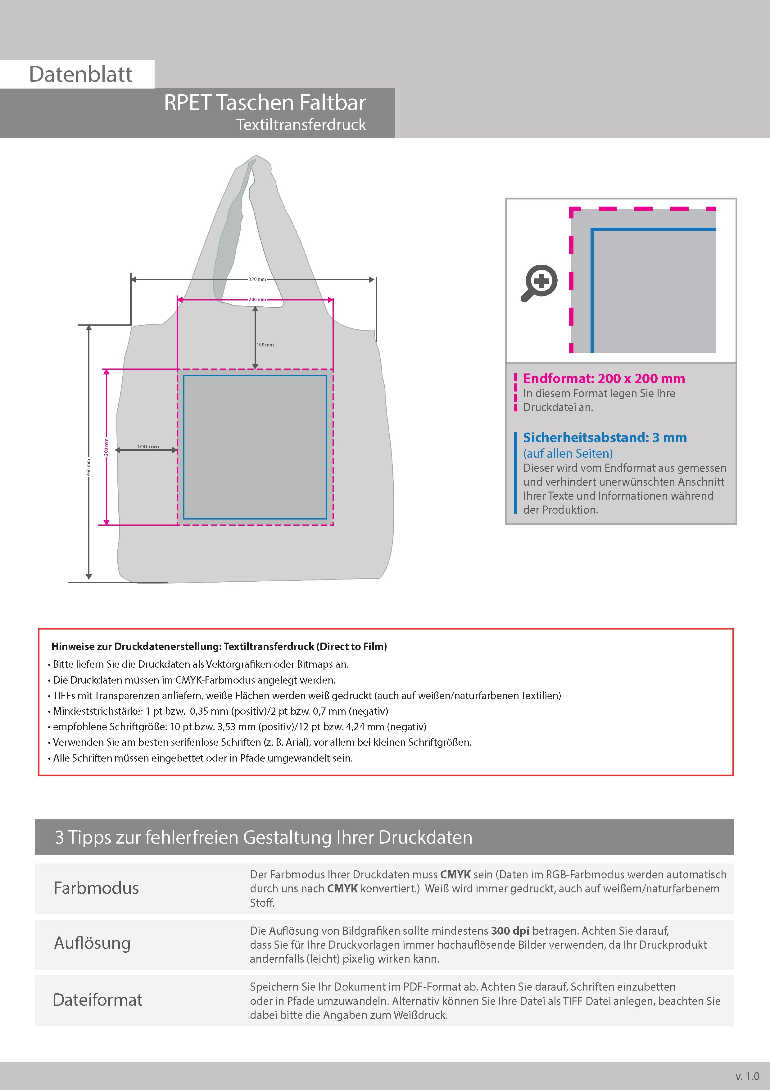 RPET-Tasche faltbar, 4/0 farbig, einseitig bedruckt