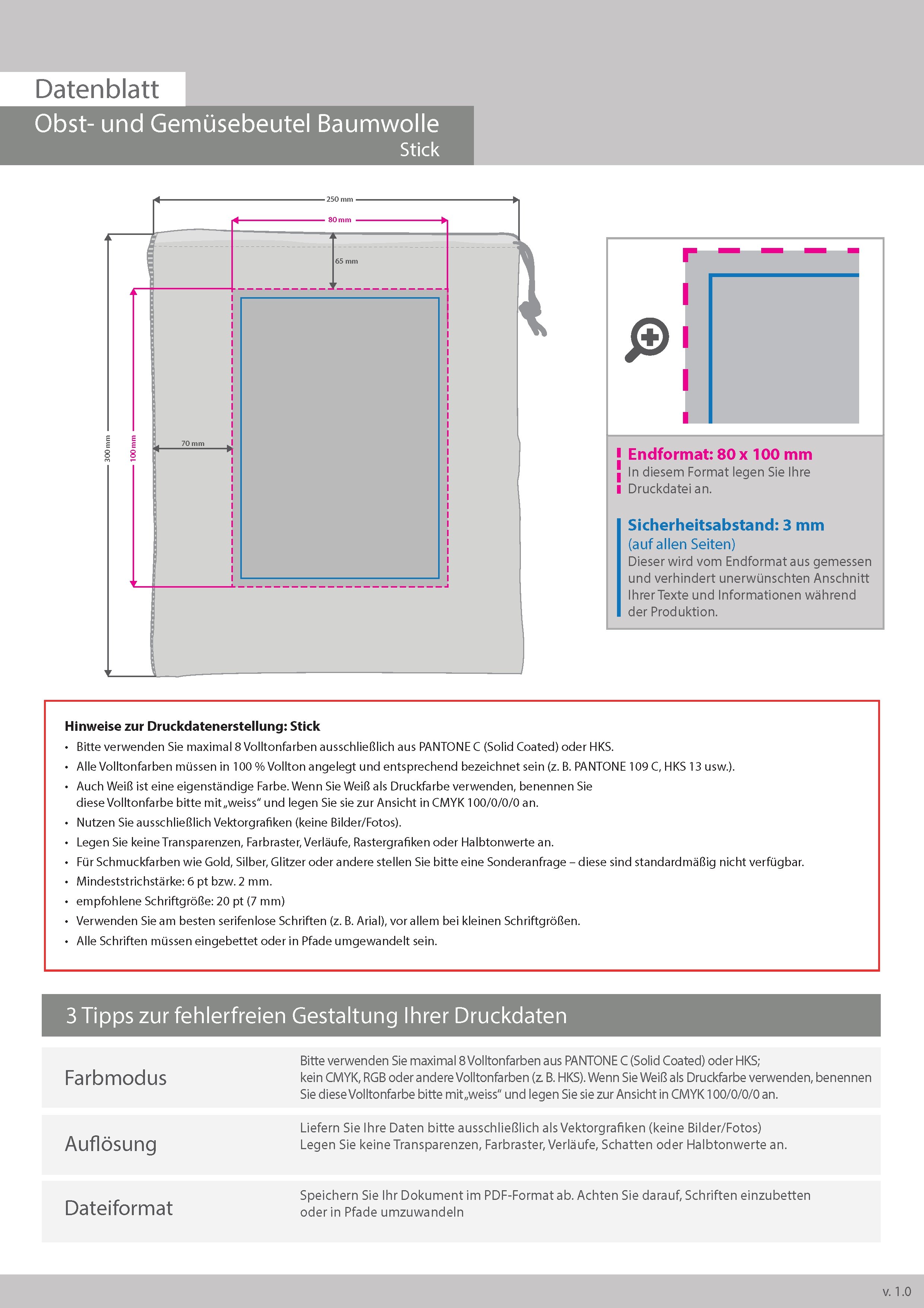 Obst- und Gemüsebeutel Baumwolle, mehrfarbig bestickt mit Ihrem Motiv