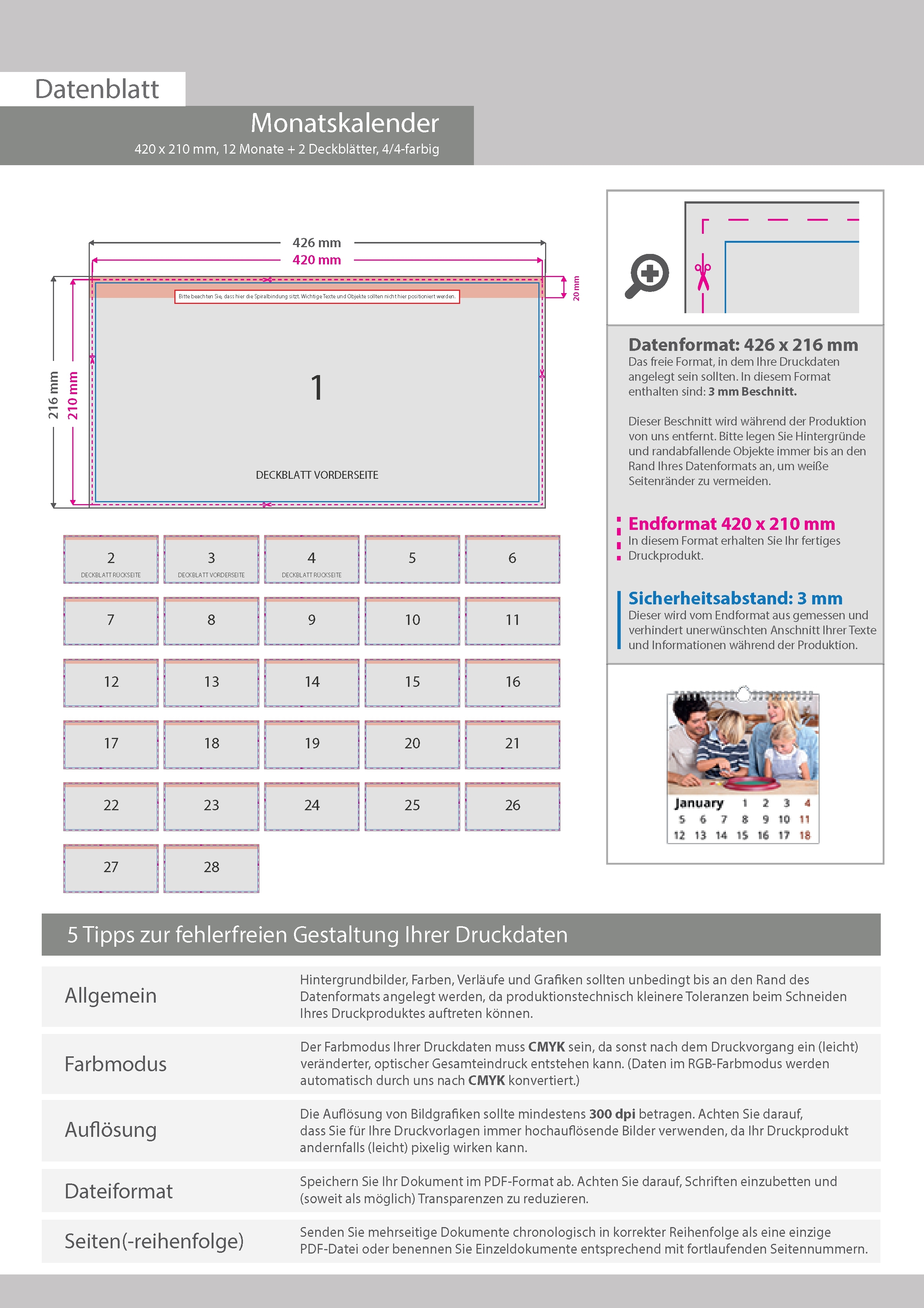 Monatskalender 14 Blatt (12 Monate + 2 Deckblätter)