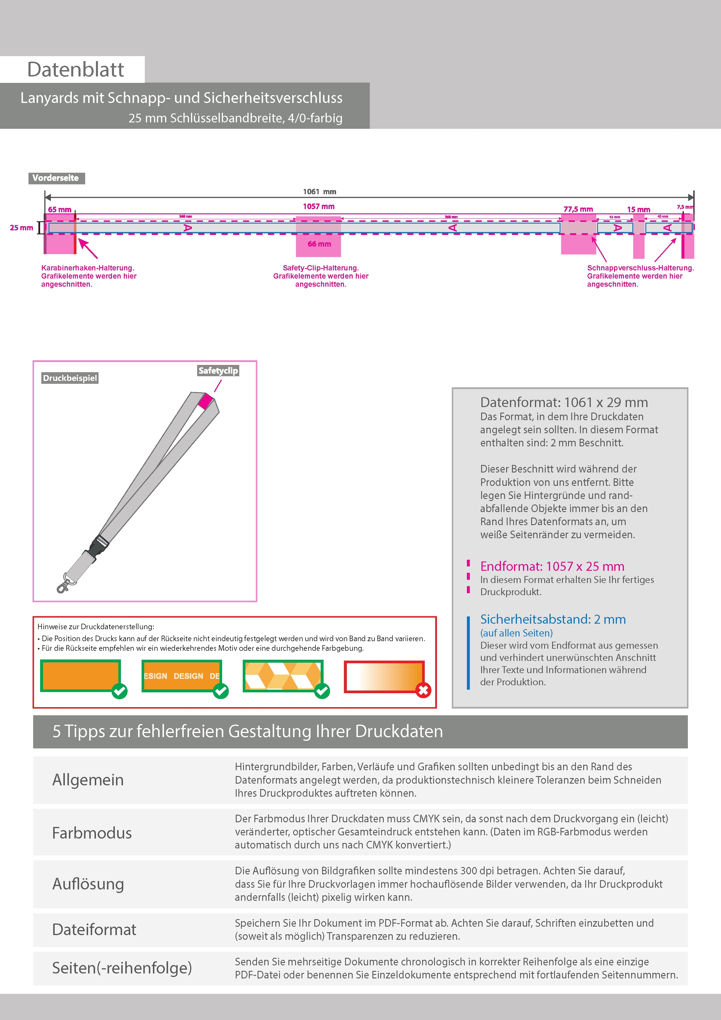 Lanyards mit Schnapp- und Sicherheitsverschluss, 25 mm Schlüsselbandbreite, 4/0-farbig einseitig bedruckt
